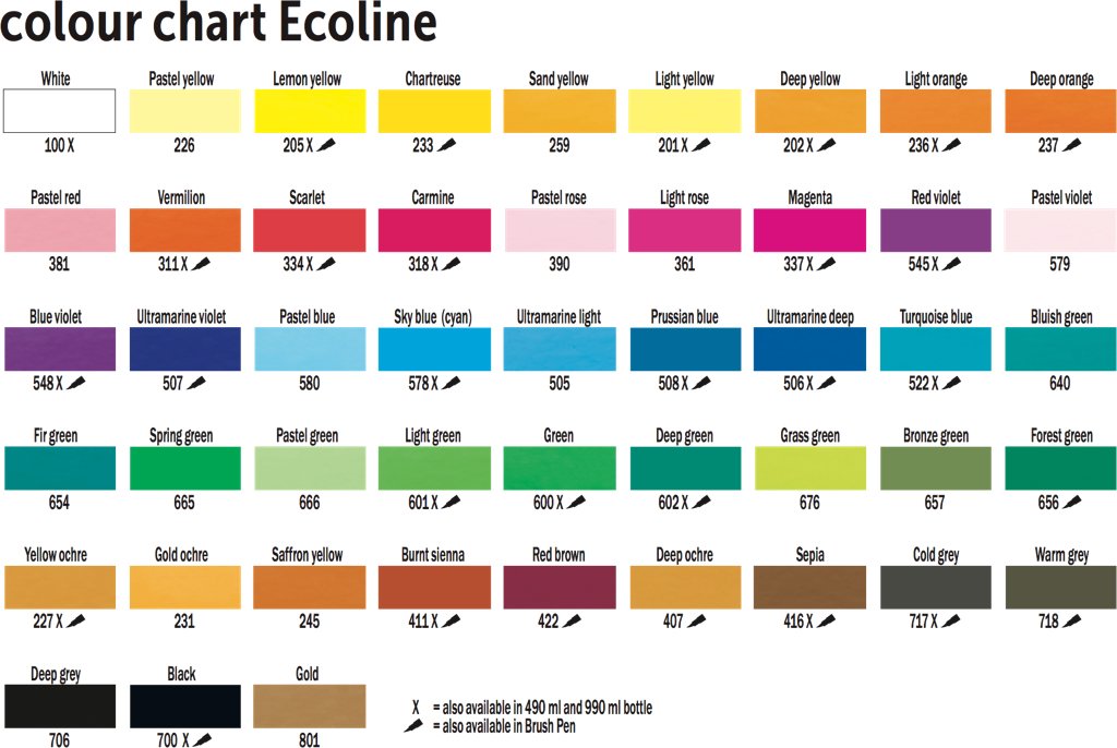 De nieuwe brush pen van Talens Ecoline is zeer vriendelijk in gebruik. Handig voor onderweg en ideaal als je op een plek werkt die schoon moet blijven. De brush pen is klaar voor gebruik, en is geurloos.